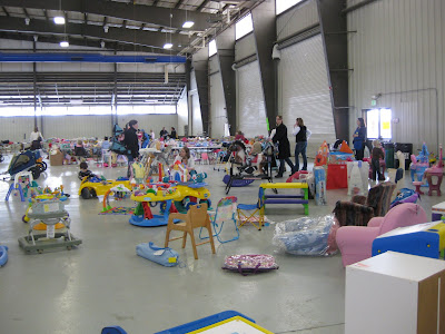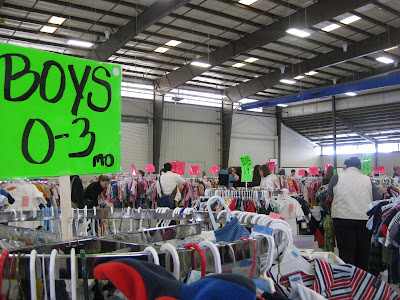 I am thrifty, I am mindful of my resource consumption (“green”), I am community-minded. These are basic elements of me that make me a perfect candidate for large consignment sales/swaps. I learned recently of a 11th Annual RMCC MOPS (Mother of Preschoolers) Consignment Sale in my backyard and figured I would go scope it out on the first day even though my husband and I really plan to shop the second day. I thought I would document what it is like for other first-time thrifty and/or green mom-to-be types.